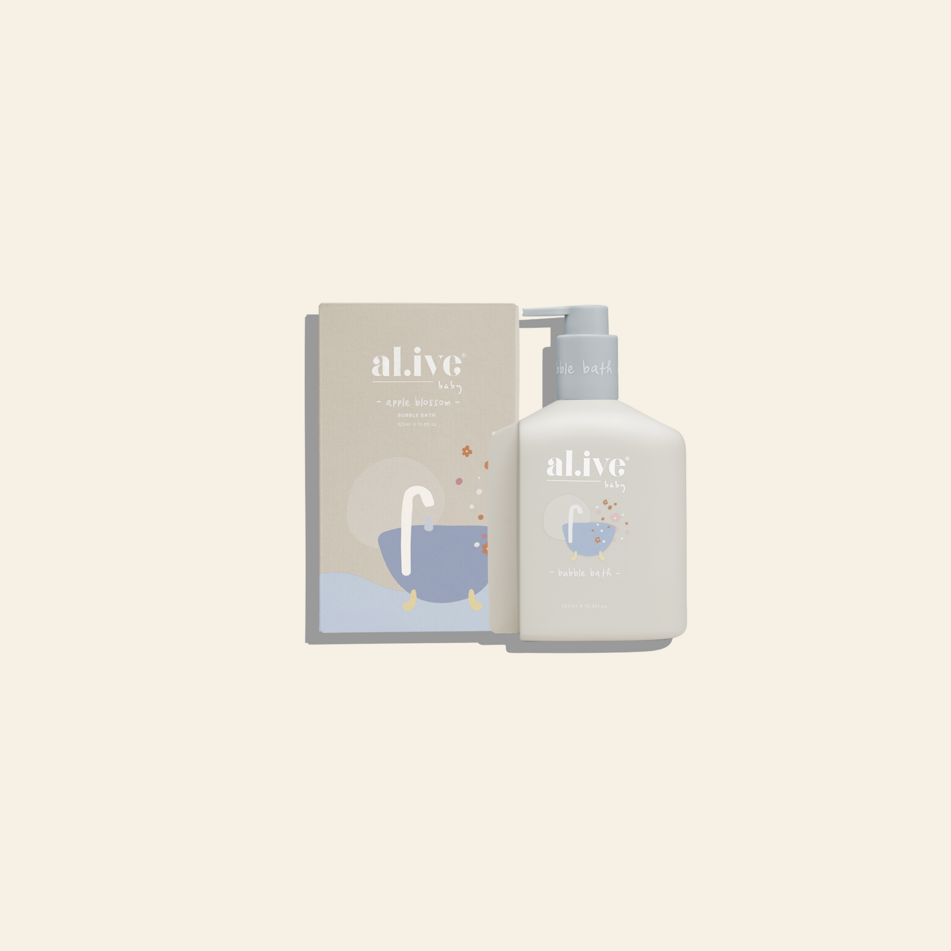 Make a splash with our al.ive baby Bubble Bath in Apple Blossom! Designed to make bath time enjoyable for your little ones, our naturally derived formula is gentle on their delicate skin, and housed in an easy-to-use pump bottle.