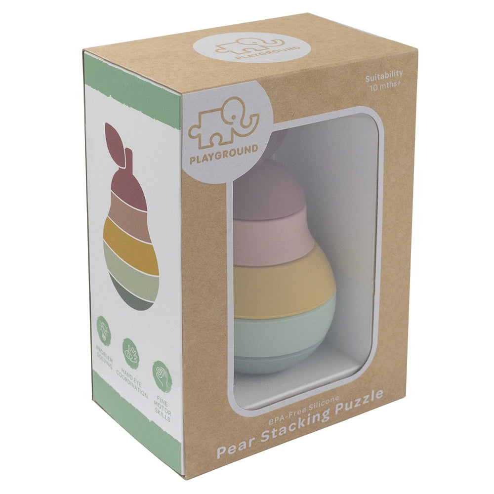 Develop your baby's fine motor skills and hand-eye coordination with this cute, playful stacking pear puzzle. Made from BPA-free, food-grade silicone this toy is safe for baby and easy to clean. Features: